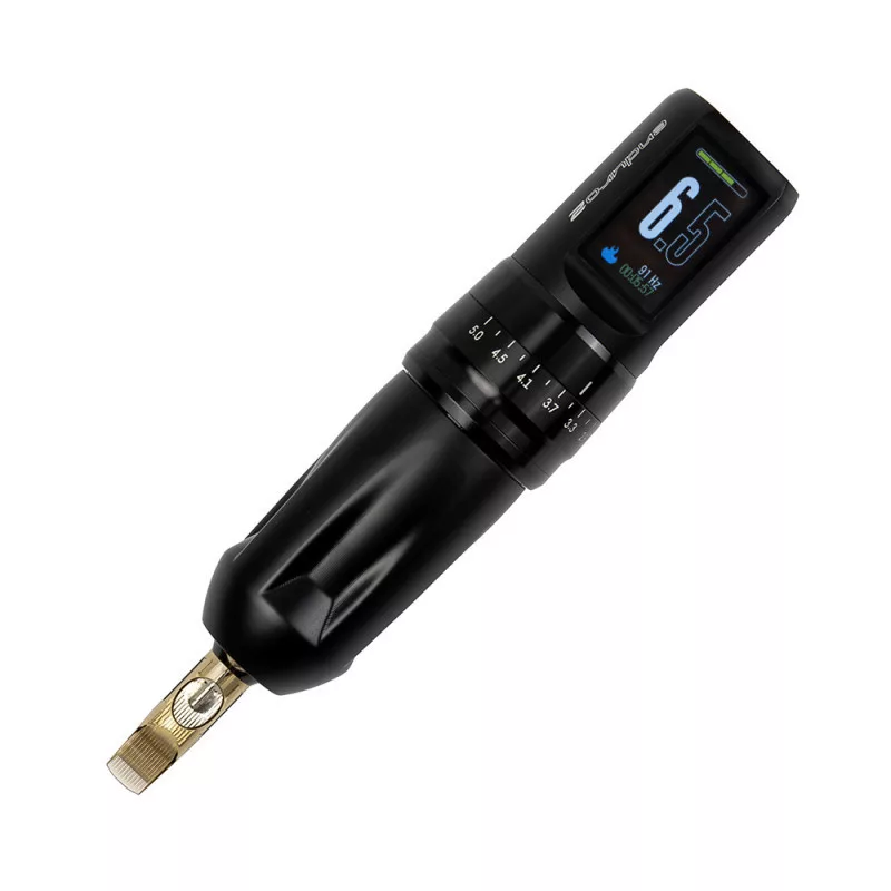 Az Equaliser Enduro2 Pen egy professzionális, vezeték nélküli tetováló gép, melyet a Kwadron a maximális sokoldalúság elérésére tervezett. Dinamikusan állítható lökethossza egy egyszerű tekerő mechanizmussal 2.5–5.0 mm között szabályozható, így egyetlen géppel végezheted a finom fekete-szürke árnyékolástól a sűrű color packingig szinte bármely technikát. A 7W-os motor stabil teljesítményt nyújt, míg a két darab 1800 mAh Li-Ion akkumulátor folyamatos, vezeték nélküli munkavégzést tesz lehetővé. Ideális választás, ha nem akarsz kompromisszumot kötni a precizitás és a teljesítmény között.