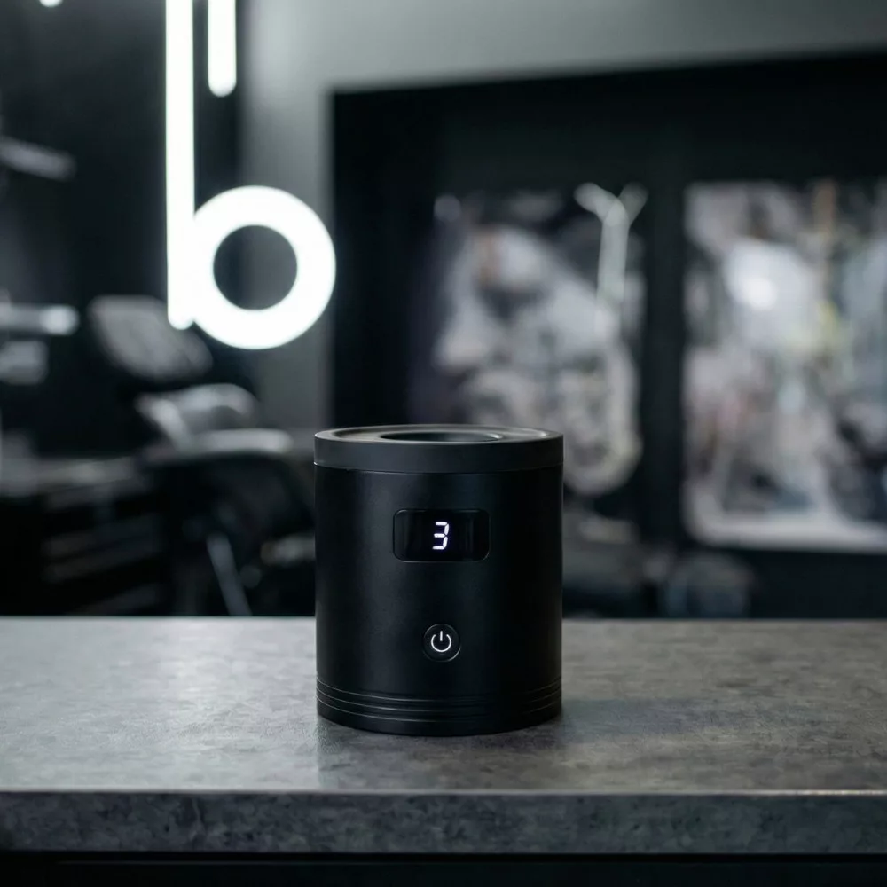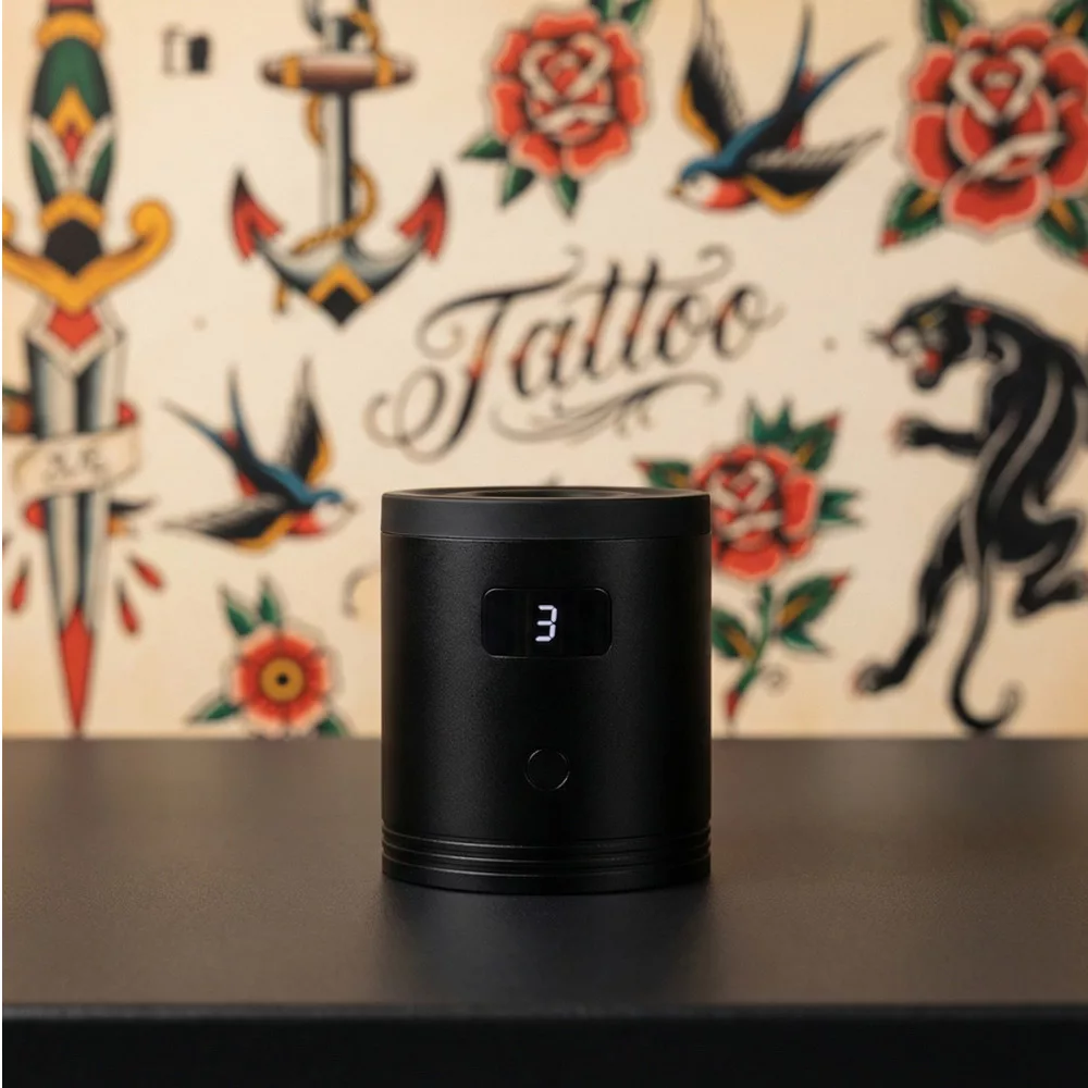 A Mini Ink mixer – festékkeverő gép (fekete) egy kompakt, nagy teljesítményű professzionális eszköz, amely a tetoválófestékek gyors és tökéletesen homogén állagának elérésére szolgál. Elsődleges feladata a pigmentek precíz homogenizálása a flakonban a munkafolyamat megkezdése előtt, biztosítva a színek egyenletes fedőképességét és a stabil pigmentbeépülést, különösen sűrűbb textúrájú vagy hosszabb ideig tárolt festékek esetén.