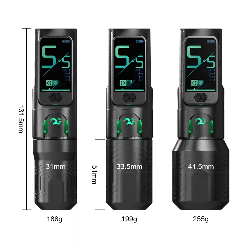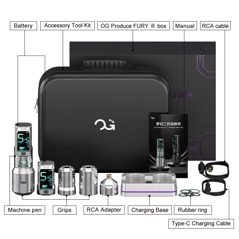 Az OG FURY II (4.2 mm) vezeték nélküli tetoválógép az OG Produce saját Custom Tattoo Motorjával érkezik, amely stabil teljesítményt és erős nyomatékot biztosít. Fix 4.2 mm stroke-ja univerzális választás: kontúrhoz, árnyékoláshoz és kitöltéshez egyaránt alkalmas. A 2300 mAh akkumulátor kb. 8 órás üzemidőt biztosít, a Soft/Hard mód és a Strong Start funkció pedig teljes kontrollt ad minden technikai szinten dolgozó művésznek.