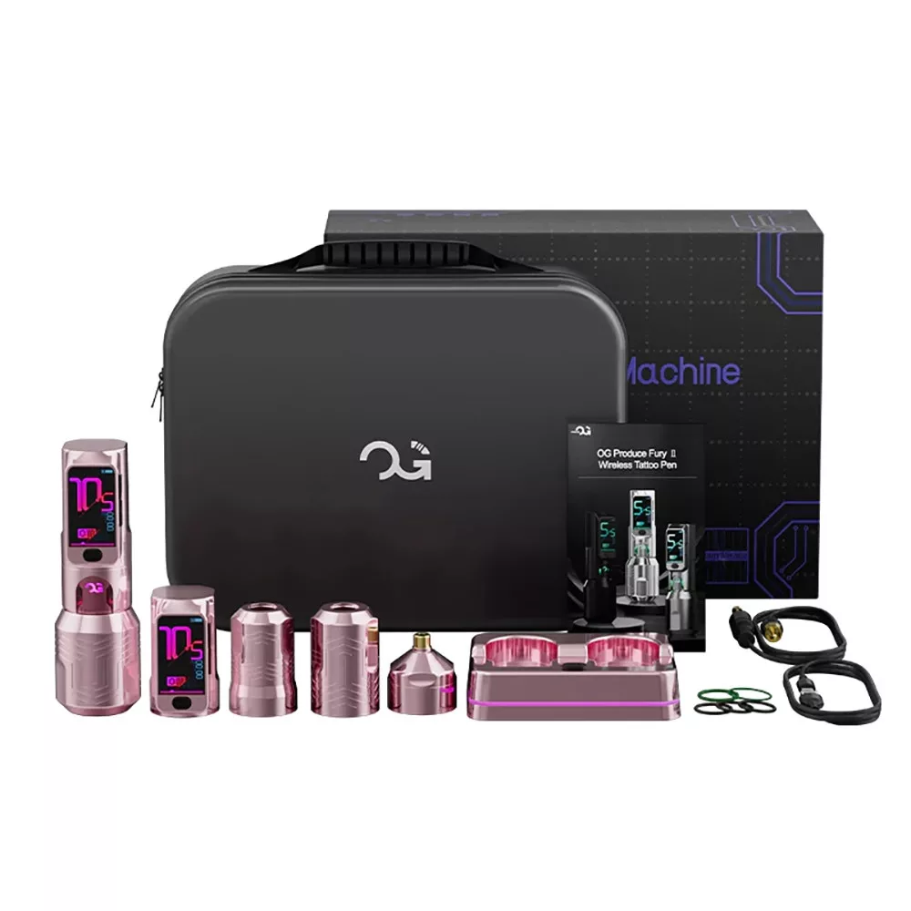 Az OG FURY II (4.2 mm) vezeték nélküli tetoválógép – Ezüst az OG Produce zászlóshajó modellje, amelyet kifejezetten a modern tetoválóművészek igényeihez terveztek. A gép lelke az OG saját fejlesztésű Custom Tattoo Motor, amely erős nyomatékot, precíz teljesítményt és megbízható működést biztosít – ideális mind a kezdő, mind a haladó felhasználóknak.