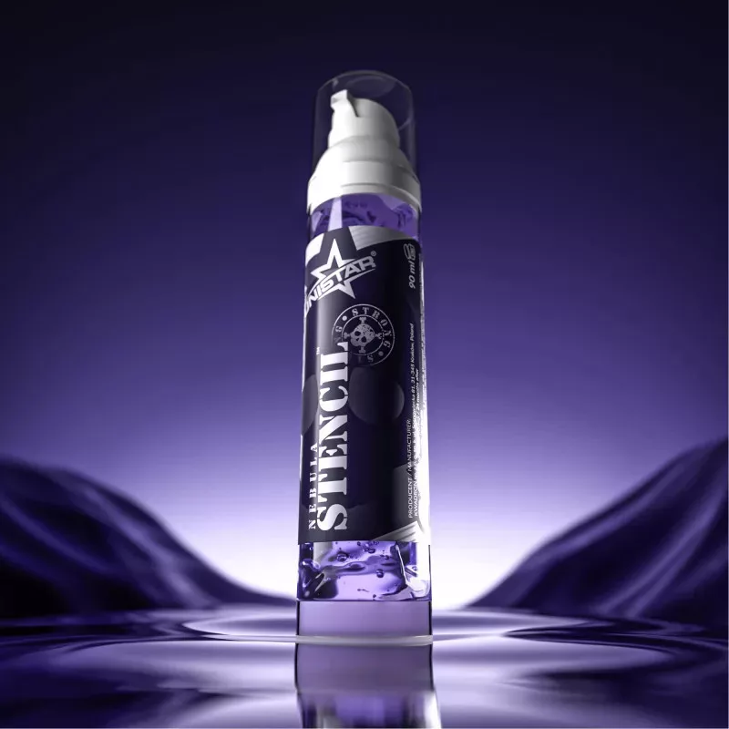 Az UNISTAR Nebula stencil gél azoknak a tetováló művészeknek készült, akik precíz és tartós sablon tapadást várnak el. A koncentrált formula sűrű, géles állagú, ami lehetővé teszi, hogy a sablon vonalai élesen és tisztán jelenjenek meg a bőrön. A művészek különösen értékelik a görbült testfelületeken nyújtott teljesítményét: a gél nem csorog le, hanem egyenletesen a helyén marad. Az airless pumpás flakon gondoskodik arról, hogy a termék az utolsó adagig friss és higiénikus maradjon. A 90 ml-es kiszerelés kompakt, könnyen elfér a munkaállomáson.